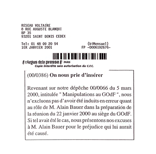 Les excuses du Réseau Voltaire – 1 Janvier 2001