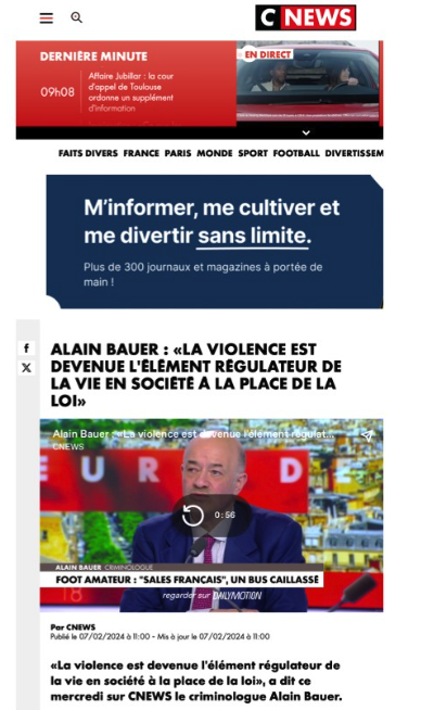 Alain Bauer : « La violence est devenue l’élément régulateur de la vie en société à la place de la loi » / CNews, 9 février 2024