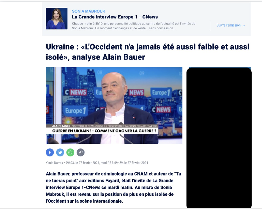 Guerre en Ukraine : « L’Occident n’a jamais été aussi faible et isolé » / CNews, 28 février 2024