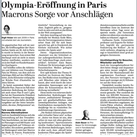 La sécurité des JO de Paris / Tagespiegel, 21 avril 2024