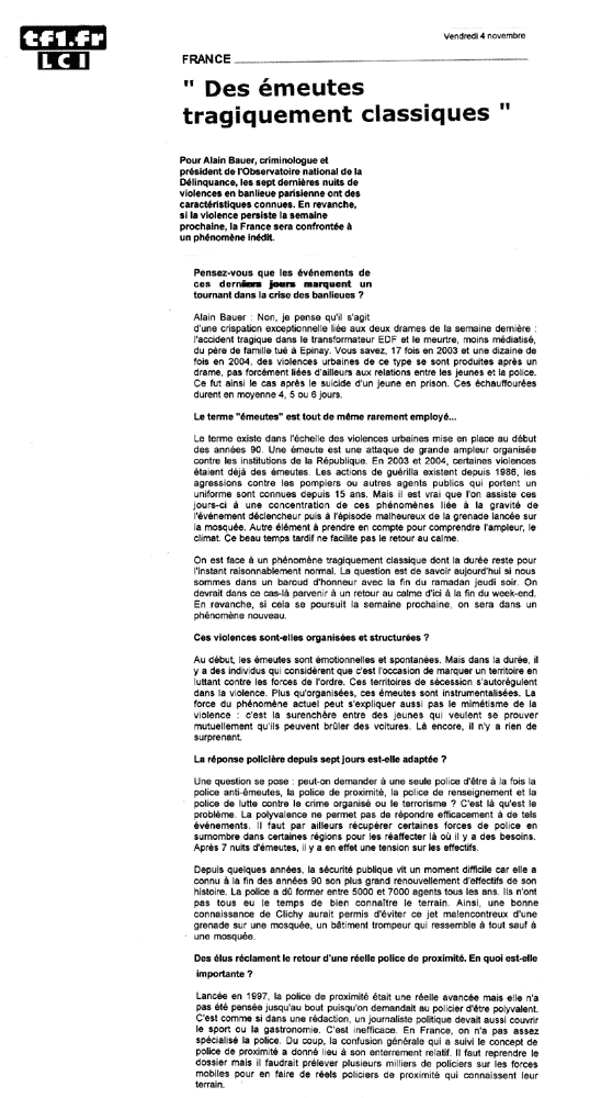 LCI – Tf1.fr – 4 Novembre 2005