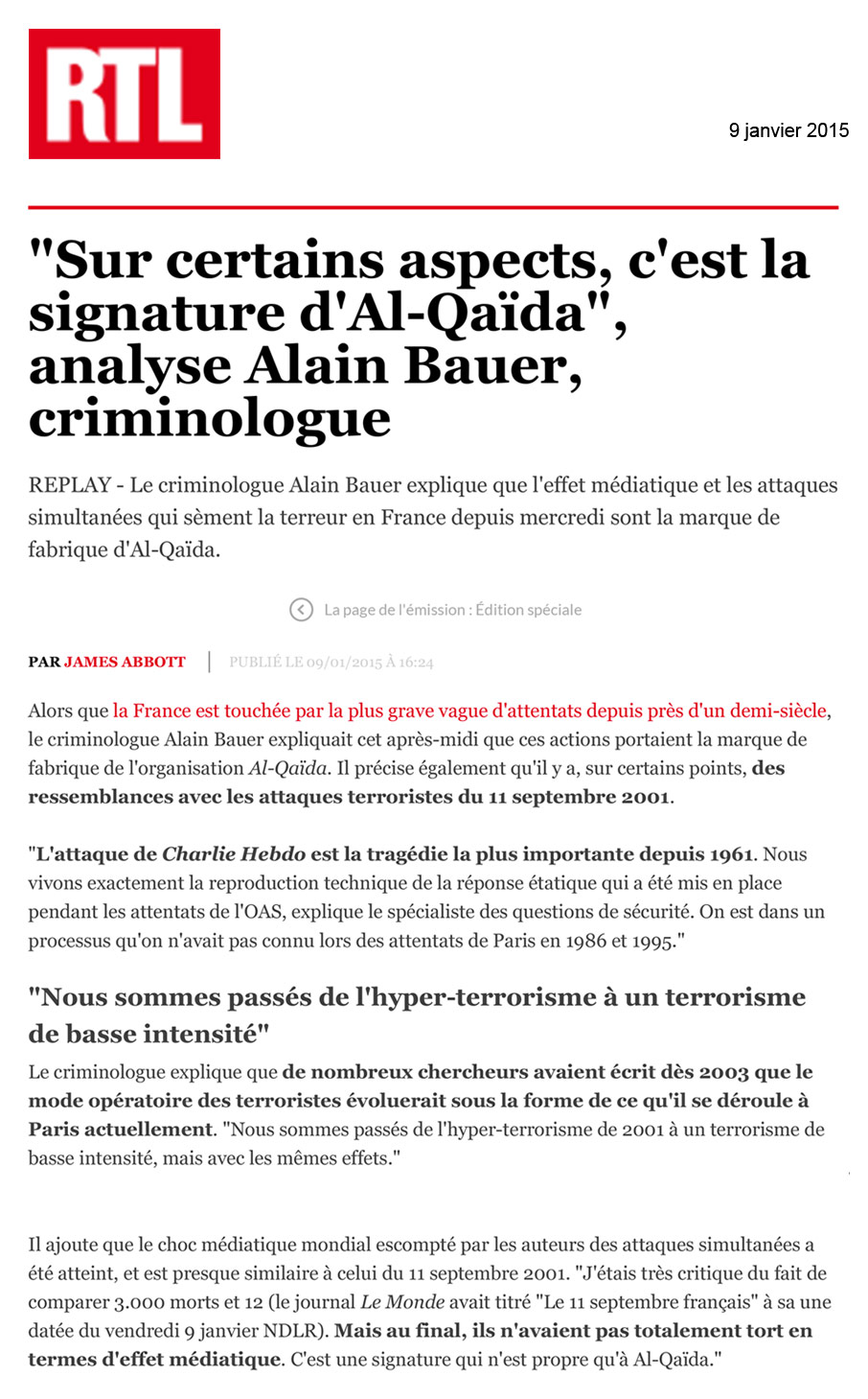 RTL – 9 janvier 2015