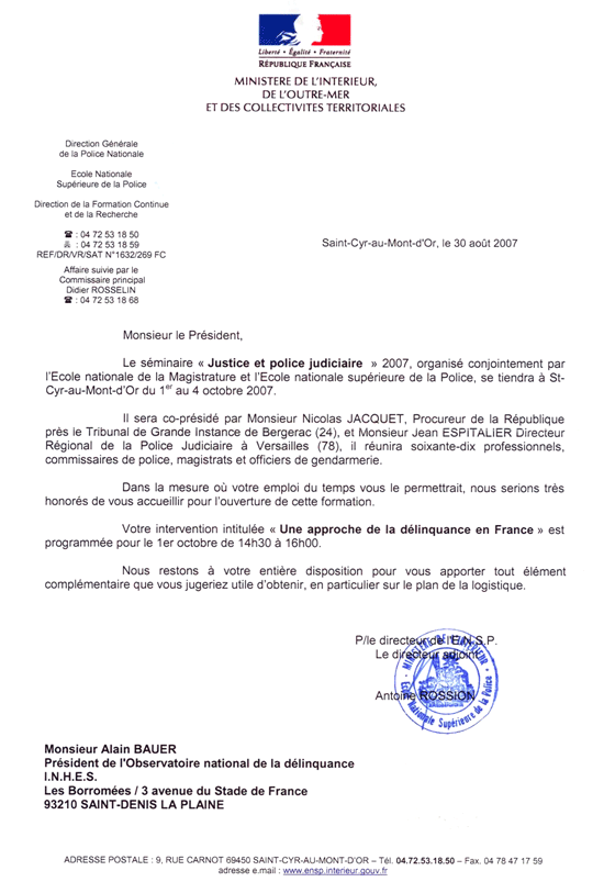 Séminaire « Justice et police judiciaire » – 1er au 4 Octobre 2007